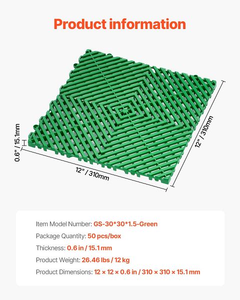 VEVOR Drainagematte Garage Bodenfliesen, Ineinandergreifend 31x31cm, VE: 50 Stück, CKPSD10X10YCS8XCRV0, 0197988480747