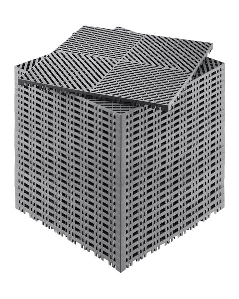 Diese Drainagefliese ist einfach ineinandergreifend - die Teile werden einfach zusammengesteckt; es wird kein Werkzeug benötigt.