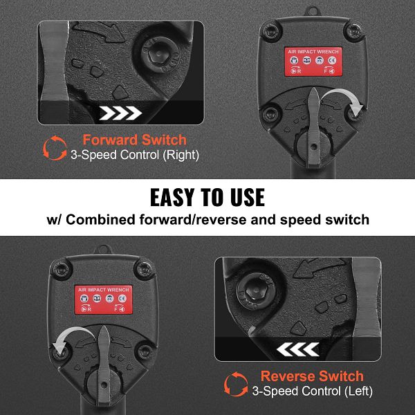 - Einfache Kontrolle des Drehmoments: Dieser 0,95 cm Schlagschrauber verfügt über einen kombinierten Vorwärts-/Rückwärtsgang- und Leistungsregler mit 6 Positionen, mit dem Sie zwischen den Arbeitsmodi wechseln und die Leistung des Drehmoments einstellen können, um alle Autoreparaturarbeiten zu erledigen.