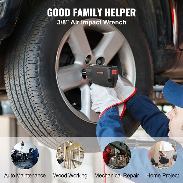 - Breite Anwendungen: VEVOR 0,95 cm Druckluft-Schlagschrauber ist leistungsstark genug, um Schrauben und Muttern zu lösen, ideal für leichte Autowerkstätten oder Reparaturen und Wartung zu Hause; durchschnittlicher Luftverbrauch: 0,13 m3/min. Luftdruck: 6,2-8,3 bar.
