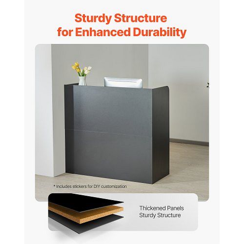 Stabile & zuverlässige Konstruktion: Dieser Empfangstresen besteht aus einer hochdichten Holzfaserplatte (MDF) mit einer glatten, abriebfesten und wasserabweisenden Oberfläche, wodurch er sich ideal für den langfristigen Einsatz und eine einfache Wartung eignet. Die Tischplatte und der Rahmen sind strukturell stabil und haben eine hohe Belastbarkeit, wodurch Haltbarkeit und Langlebigkeit gewährleistet sind