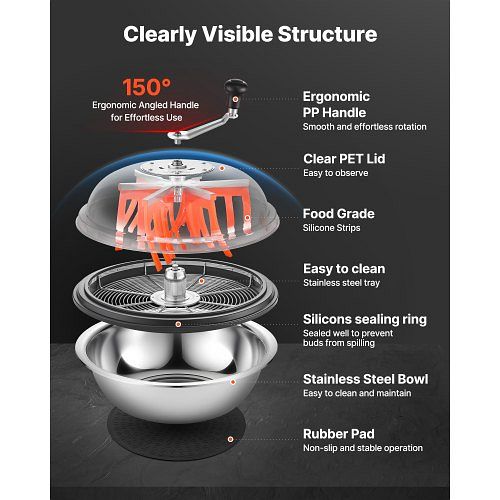 - Praktisches Top-Loading-System: Der robuste obere Rahmen hält den Knospenblatt-Schüsselschneider sicher an seinem Platz, während sich der aufklappbare obere Deckel für eine kontinuierliche Beschickung leicht öffnen lässt – so bleibt Ihr Arbeitsablauf reibungslos und ohne Unterbrechungen.