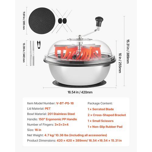 VEVOR Erntemaschine Bowl 42cm, manuell, Edelstahlklingen, Nass-/Trocken-Schneidemaschine für Pflanzen und Blumen, SDKSCJ16YCSD0KBWD001V0, 0197988895176