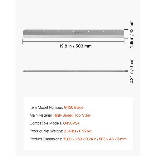 VEVOR Ersatzklinge Hochleistungsstahl für Cutter G450VS+, Papierschneidemaschine (503 x 43 x 6 mm), DDQZJEKDP450D23U1001V0