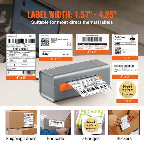 - Unterstützung für verschiedene Plattformen: Der VEVOR-Etikettendrucker wurde entwickelt, um Ihre Arbeitseffizienz zu verbessern und mehr Geschäftskomfort zu bieten. Er kann die Anforderungen verschiedener E-Commerce- und Transportplattformen erfüllen, einschließlich Amazon, eBay, Shopify, PayPal, Etsy, UPS, XPSship, Shippo, ShippingEasy, WorldShip, OrderCup, FedEx, usw. Lassen Sie Ihre Geschäfte noch heute effektiv betreiben!