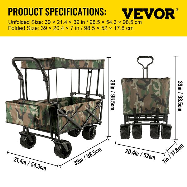 VEVOR Faltbarer Bollerwagen Handwagen 100kg Tarnfarbe, DZDPTC-MCSHSKU001V0, 0742521699348