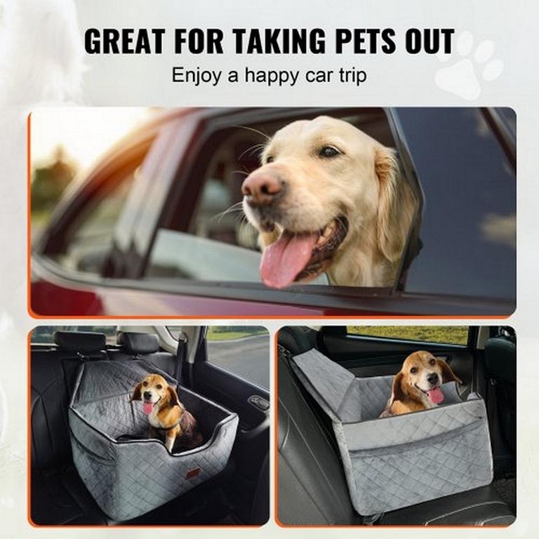 VEVOR Hundeautositz mit Aufbewahrungstasche, Sicherheitsleine, Schwammfüllung, für mittelgroße/große Hunde bis 25 kg, grau, CWZGQCZYHSSFWKF5YV0