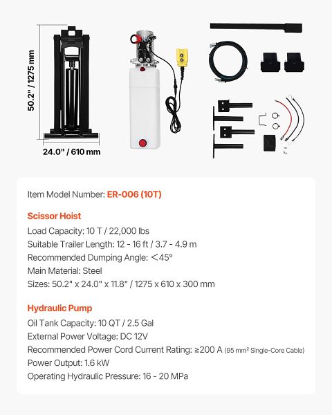 VEVOR Hydraulischer Scherenhebesatz, 10t Hydraulischer Kippliftsatz Kippanhänger, YYZXSJTJDYXYISBZHV9, 0197988648086