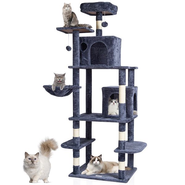 VEVOR Katzenbaum Kratzbaum Katzenkratzbaum 2 Katzenhäuser Sisal 174cm Dunkelgrau, DXSMS8C2FSH0S4J5KV0