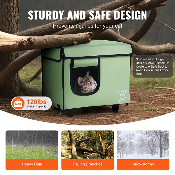 VEVOR Katzenhütte Katzenhaus, Beheizt 42x33x39cm Grün (S), ZFTSBYMBHSNJ9G53EV2, 0197988767121