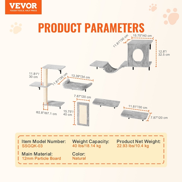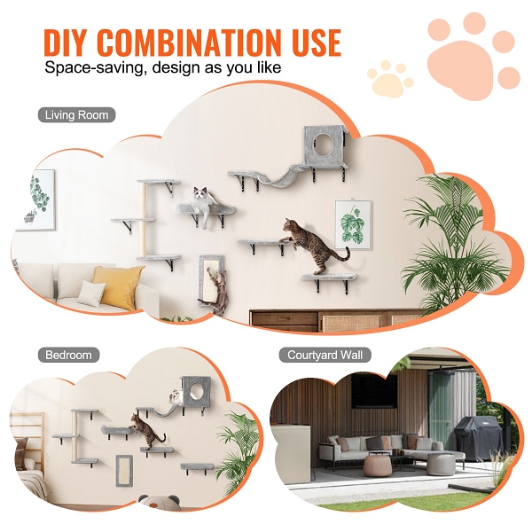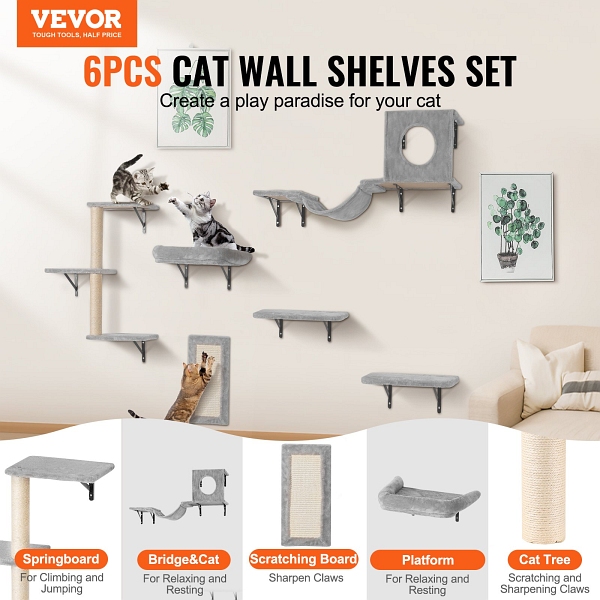 VEVOR Kletterwand Katzen Wandliege Katzenliege Katzenbett Katzenregal 6er-Set, ZYSBGSMPJ6JTKY3NYV0, 0197988411994