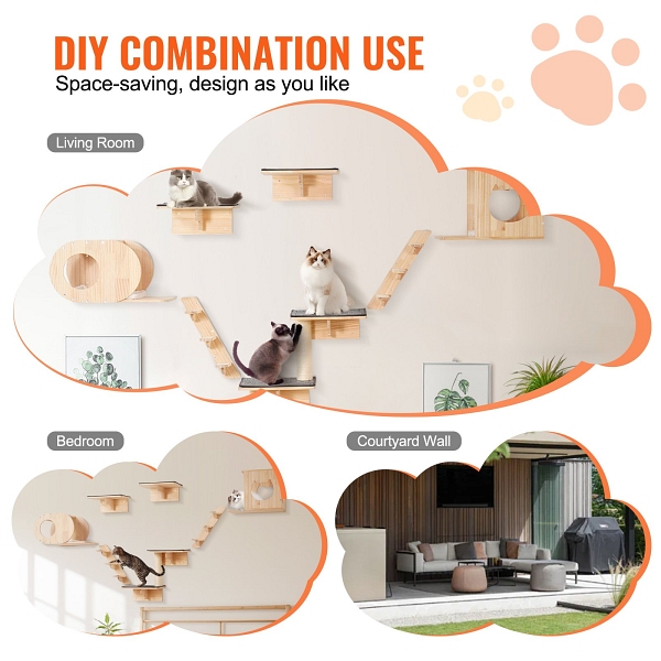VEVOR Kletterwand Katzen Wandliege Katzenliege Katzenbett Katzenregal 7er-Set, ZYSBGSMPJ7JT3OV0QV0, 0197988412168