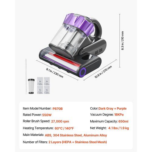 VEVOR Matratzenstaubsauger 550W, 18 Kpa Saugleistung, doppelter Staubbehälter, HEPA-Filter,... mehr