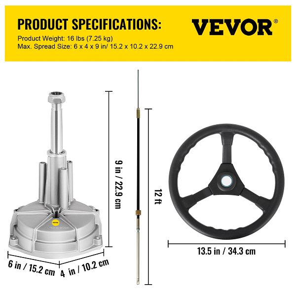 - Hochleistungs-Drehlenksystem: Das VEVOR-Bootslenksystem-Kit wurde speziell für den Einsatz auf See entwickelt. Es wird mit einem 12 Fuß langen Lenkkabel, einer standardmäßigen 3/4-Zoll-Kegelwelle, einem Schwenkhelm, einem 13,5-Zoll-Lenkrad, einem 90-Grad-Blenden-Kit und Hardware geliefert. Ermöglicht dem Schiff eine präzise Steuerung und verbessert die Arbeitseffizienz. Übernehmen Sie die Kontrolle über Ihr Boot und sorgen Sie den ganzen Sommer lang für Wellen.