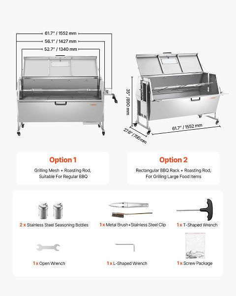 VEVOR Spanferkelgrill Lammgrill Drehspieß, 130kg 60W Edelstahl, DDXZKJ56YCQG19Z70V2