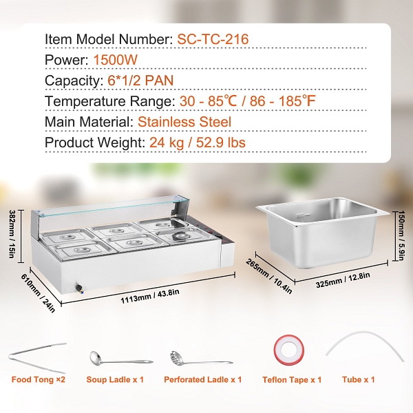 VEVOR Speisenwärmer Chafing Dish Gastronormbehälter 6x8Qt Glasschild, SYSPBWQBLZK63G7J5V2