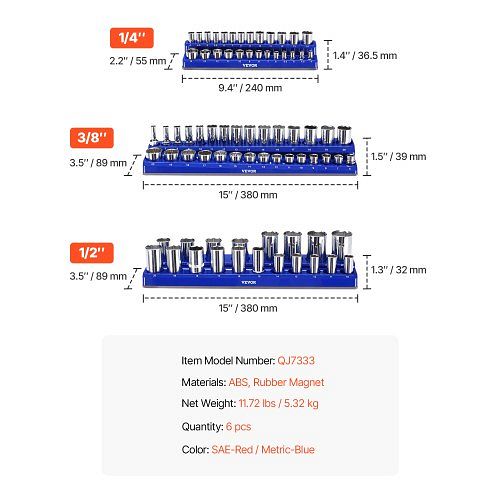 VEVOR Steckschlüssel-Organizer-Set, 6-teilig, 1/4", 3/8" & 1/2" SAE-Ablagen, für bis zu 143 Standard- & tiefe Steckschlüssel, TTJCXSHL6JTC3DNUPV0, 0197988483618