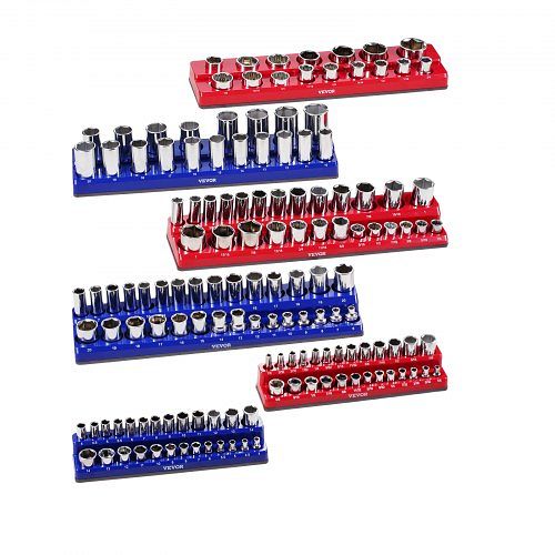 VEVOR Steckschlüssel-Organizer-Set, 6-teilig, 1/4 Zoll, 3/8 Zoll & 1/2 Zoll SAE-Steckschlüsselablagen, für bis zu 143 Standard- & tiefe Steckschlüssel, (Steckschlüssel nicht im Lieferumfang enthalten)