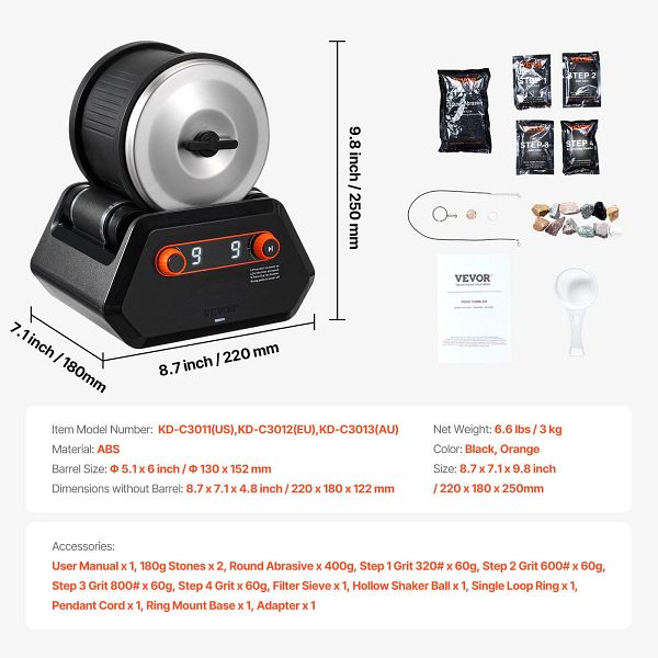 VEVOR Steinpolierset Steinpolierer Steinschleifmaschine, Einstellbar 1,81kg, YSDMJHSSDKDZLXA8PV2, 0197988646686