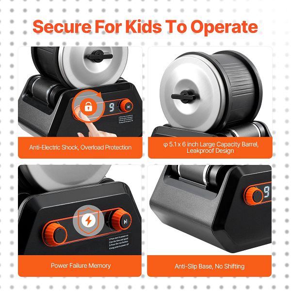 - Intelligentes Sicherheitsdesign: Der Steinpolierer verfügt über ein verbessertes, gewölbtes Deckeldesign für einfaches und handsicheres Drehen. Die hochdichte Kammer verhindert Wasserlecks und hält Ihren Arbeitsplatz sauber. Er verfügt außerdem über einen geriffelten Griff zum einfachen Anheben und Anti-Rutsch-Pads, um die Maschine bei starkem Betrieb stabil zu halten.