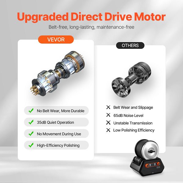 - Riemenloser Direktantriebsmotor: Keine Sorgen mehr über gerissene Riemen! Der Direktantriebsmotor liefert effiziente Leistung bei 35 dB geräuschlosem Betrieb. Das Steintrommel-Set läuft auch nach längerem Gebrauch kühl und gewährleistet eine längere Lebensdauer für endlosen Steintrommelspaß.