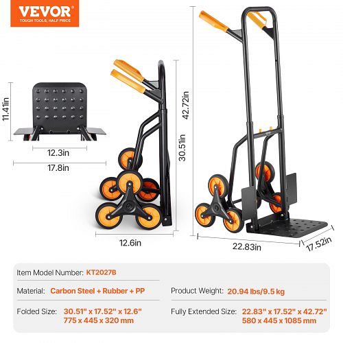 Robust gebaut, hält Tonnen: Dieser robuste Treppenwagen mit integriertem Rahmen aus Karbonstahl ist stabil und robust und kann auch schwere Lasten transportieren. Egal, ob Sie 440 lbs / 200 kg auf ebenem Boden oder 330 lbs / 150 kg die Treppe hinauf transportieren, er bewegt sich nicht. Perfekt für die meisten Anforderungen im Haushalt und im Geschäft.