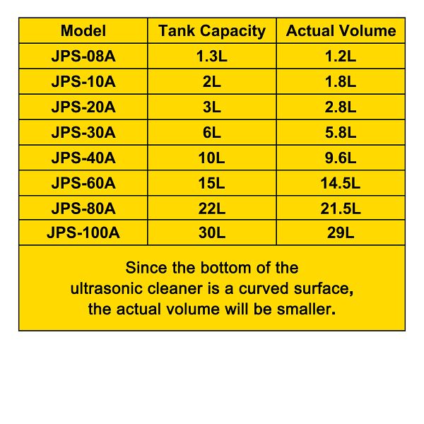 - Tankkapazität: 9,6-10 L / 2,5-2,6 Gal (Da der Boden des Ultraschallreinigers eine gewölbte Oberfläche ist