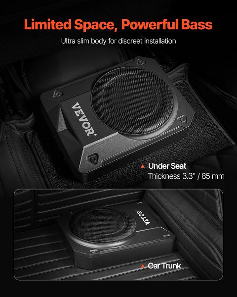 VEVOR Untersitz-Auto-Subwoofer, 400W Schlankes Aktives Subwoofer-System 254mm, MCXAZQCZYXDYY05MGV9, 0197988481546