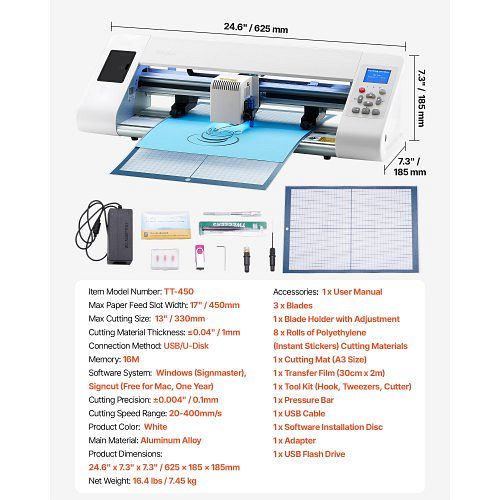 VEVOR Vinylschneider, 33 cm, mit automatischer Kantenerkennung & Designsoftware, kompatibel mit SVG/EPS/PLT, für Bastelarbeiten, TSSDKZJ12INCTIQPW001V2