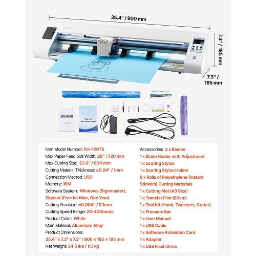 VEVOR Vinylschneider 60 cm mit automatischer Kantenerkennung, Designsoftware & 2 Klingentypen, kompatibel mit SVG/EPS/PLT, TSSDKZJ21INCUGSLU001V2, 0197988530022