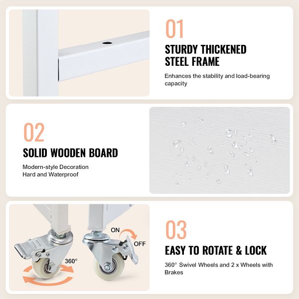 VEVOR Wärmepressentisch 3-stufiger Druckerständer, Rollbar Weiß Beweglich, RYJGZTBS3CDGDNP3UV0, 0197988809685