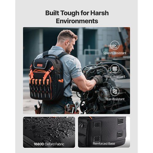 VEVOR Werkzeugrucksack, 45 Taschen, Organizer mit Laptopfach & verstärktem Boden, für Elektriker & Handwerker, GJBBBD1214IN0W07J001V0, 0197988530695