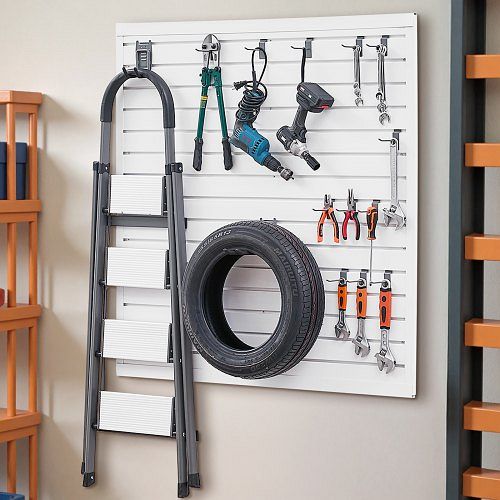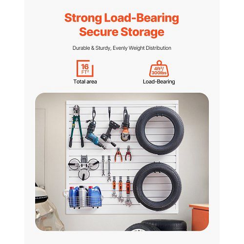 Hohe Tragfähigkeit: Das Lamellenwandpaneel kann bis zu 300 lbs/136 kg tragen und bietet eine stabile und effiziente Lagerung für verschiedene schwere Gegenstände wie Hämmer, Bohrer, Leitern und mehr, was es ideal für den Einsatz in Garagen, Werkstätten und anderen Räumen macht.