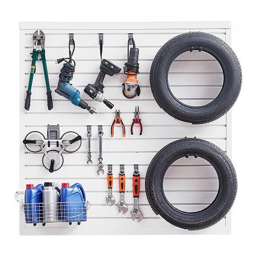 VEVOR Werkzeugwand 1230x1235x20mm, PVC-Garagen-Lamellenwand, weißer Wandorganizer, 136kg pro Platte, Lamellenwandpaneel mit Kupplungsstruktur & DIY-Zuschnitt, geeignet für Lagerung & Präsentation