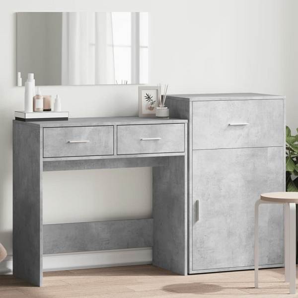 vidaXL 3-tlg. Schminktisch-Set Betongrau Holzwerkstoff, 3276521, 8721102594038