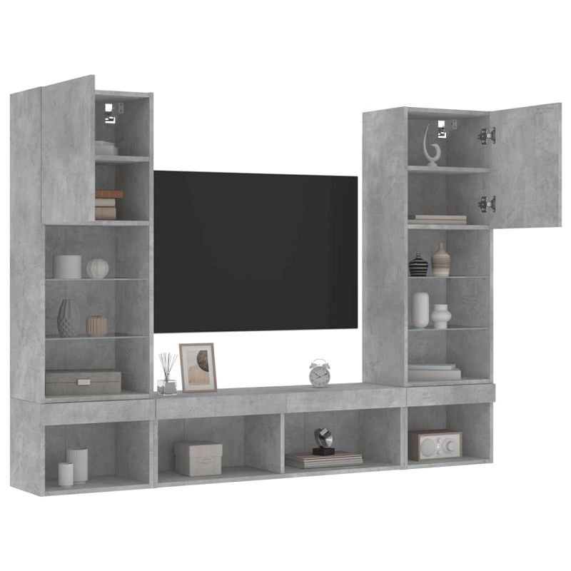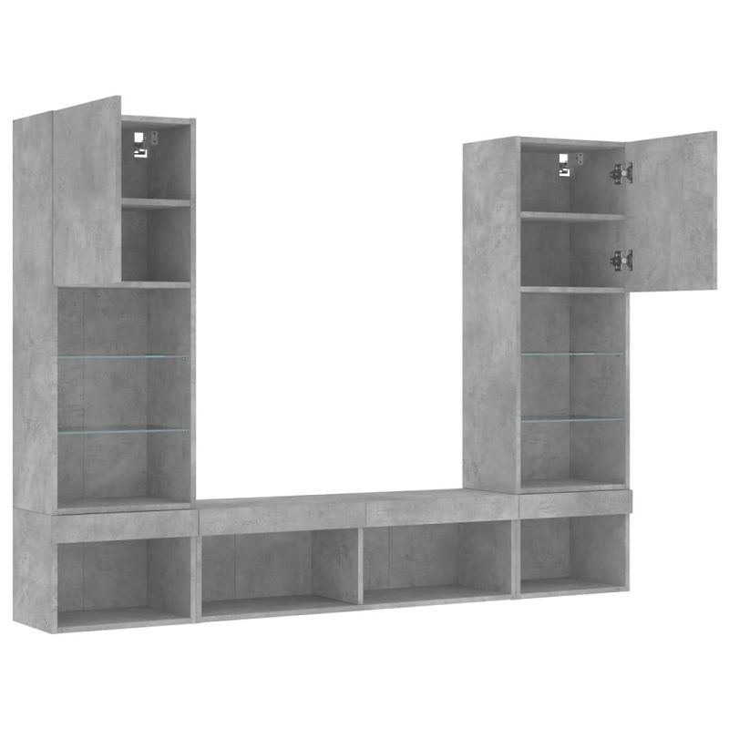 vidaXL 5-teilig Wohnwand mit LED-Beleuchtung Betongrau Holzwerkstoff, 3216693, 8721012471085