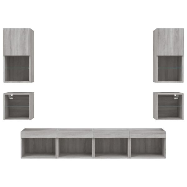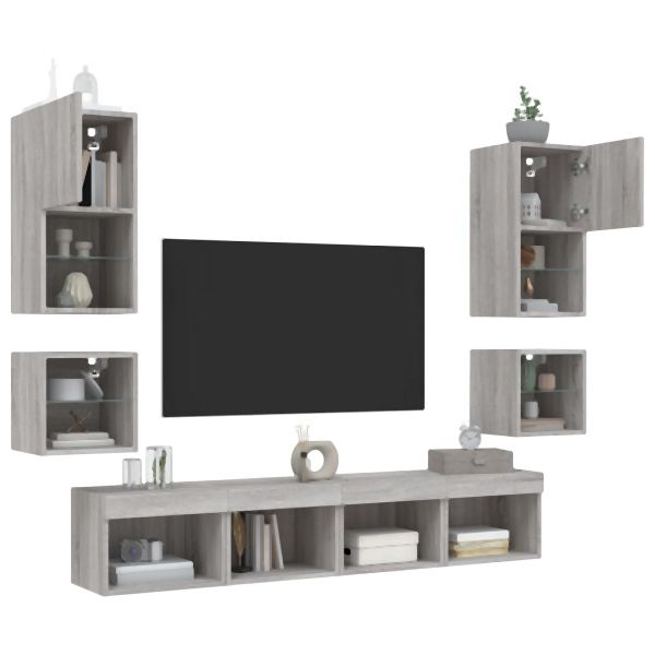 vidaXL 8-tlg. Wohnwand mit LED-Beleuchtung Grau Sonoma Holzwerkstoff, 3216595