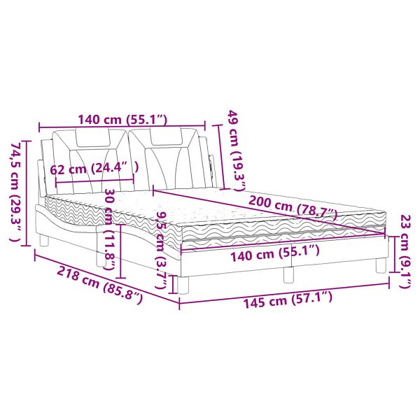 In diesem Bett mit Matratze genießt du einen besseren, erholsameren Schlaf! Es ist eine einladende Ergänzung zu jedem Schlafzimmer. Langlebiges Kunstleder: Hochwertiges Kunstleder ist ein äußerst langlebiges Material. Es ist schmutzabweisend und lässt sich mit einem feuchten Tuch einfach reinigen. Durch die glatte Oberfläche weist es die Schönheit von Echtleder und einen luxuriösen Look auf. Sperrholzlatten: Die Sperrholzlatten sorgen für eine gute Gewichtsverteilung und auch dafür, dass die Matratze bei jeder Bewegung deines Körpers während des Schlafes an Ort und Stelle bleibt. Ausgezeichnete Unterstützung: Das Kopfteil-Kissen ist mit Schaumstoff gefüllt und fühlt sich daher extra weich und komfortabel an. Es bietet eine ausgezeichnete Rückenunterstützung beim Sitzen im Bett oder Fernsehen. Schaumstoffmatratze: Die Bettmatratze besteht aus 3 Schichten und ist mit 22D PU-Schaumstoff gefüllt, um optimalen Komfort zu bieten. Sie lindert Müdigkeit und fördert die Blutzirkulation, um für vollständige Entspannung und einen guten Schlaf nach einem langen Tag zu sorgen. Zudem besitzt die Matratze die Härtegrade H2 und H3, sodass du durch einfaches Wenden der Matratze den Härtegrad wählen kannst, der deinen Anforderungen bestens entspricht. Wellenförmiges Seitendesign: Das stilvolle und raffinierte Design in Wellenform verleiht deiner Einrichtung eine moderne und elegante Note und macht das Bettgestell zum Mittelpunkt deines Schlafzimmers.