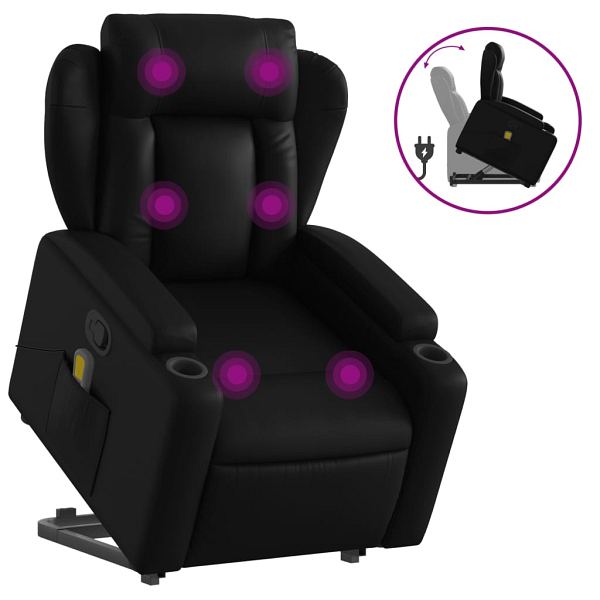 vidaXL Massagesessel mit Aufstehhilfe Schwarz Kunstleder, 3204551, 8721012170391