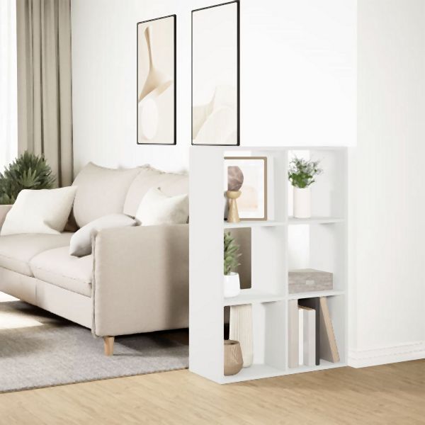 Das moderne Raumteiler-Bücherregal im geometrischen Design bietet viel Stauraum und eignet sich perfekt, um deinen Wohnraum stilvoll und aufgeräumt zu halten! Starkes und langlebiges Material: Holzwerkstoff ist ein langlebiges und robustes Material mit einer glatten Oberfläche, das gegen Feuchtigkeit, Verformung und Rissbildung beständig ist; dadurch ist es eine zuverlässige Wahl für die Herstellung von Möbeln. Reichlich Stauraum: Das Bücherregal verfügt über sechs würfelförmige Fächer, in denen sich Bücher, Dekoartikel und andere Haushaltsgegenstände aufbewahren lassen. Flexible Aufstellungsmöglichkeiten: Das Regal kann sowohl in der Breite als auch in der Höhe auf den Boden gestellt werden und bietet so vielfältige Möglichkeiten der Raumgestaltung. Vielseitig einsetzbar: Das Regal kann auch als Raumteiler verwendet werden und passt problemlos zu jedem Einrichtungsstil. Es findet Platz im Wohnzimmer, um Dekoartikel zur Schau zu stellen, im Büro, um Bücher und Unterlagen zu verstauen, im Schlafzimmer, um Alltagssachen aufzubewahren, oder im Keller, um Haushaltssachen zu lagern. Pflegeleicht: Dank seiner glatten Oberfläche lässt sich das Raumtrenner-Bücherregal einfach mit einem feuchten Tuch reinigen und erfordert wenig Pflege. Achtung: Um ein Umkippen zu vermeiden, sollte dieses Produkt mit der mitgelieferten Wandhalterung gesichert werden. Gut zu wissen: Schrauben und Dübel für die Montage an der Wand sind nicht enthalten. Passendes Montagezubehör muss separat gekauft werden. Wenn du dir bezüglich der Montage nicht sicher bist, wende dich bitte an einen Fachmann. Bitte lies und befolge jeden Schritt in der Anleitung.