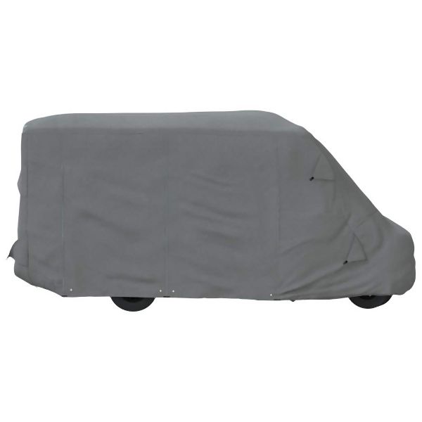 Diese Abdeckplane schützt dein Reisemobil und hält es auch bei Regen oder Schnee trocken und sauber. Allwetterschutz: Die Oberseite dieser Wohnmobil-Schutzhülle ist aus strapazierfähigem und atmungsaktivem 3-Lagen-Vliesstoff gefertigt, während die Seitenteile aus einlagigem Vliesstoff bestehen, um ausgezeichnete Wasser-, Reißfestigkeit und UV-Schutz zu bieten. Sie schützt dein Fahrzeug effektiv vor Regen, Schnee, starkem Wind, Vogelkot, Staub und Kratzern. Winddichtes Design: Die elastischen Säume der Hülle sorgen für eine feste Passform, während die verstellbaren Gurte mit Schnallen an der Unterseite, Vorder- und Rückseite das Wegblasen der Plane an windigen Tagen vermeiden. Zudem ist die Plane mit Klettverschlüssen um die Reißverschlüsse versehen, um eine sichere Befestigung zu ermöglichen. Bequem und leicht zugänglich: Die Seitenteile mit Reißverschlüssen lassen sich bei Bedarf hochrollen, um einen bequemen Zugang zur Fahrzeugtür zu ermöglichen, während die Fenster zur Belüftung leicht geöffnet werden können. Einfache Lagerung: Diese Schutzhülle wird samt einer praktischen Aufbewahrungstasche geliefert, in der sie sich bei Nichtgebrauch leicht verstauen lässt. Gut zu wissen: Bitte nimm vor dem Erwerb genaue Messungen deines Fahrzeugs vor, um sicherzustellen, dass du die richtige Größe auswählst.