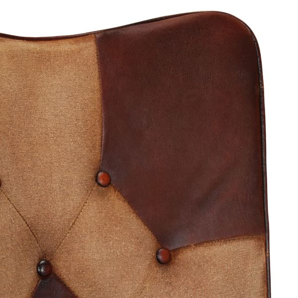 vidaXL Sessel mit Hocker Braun Echtleder und Canvas, 339676, 8720286772119