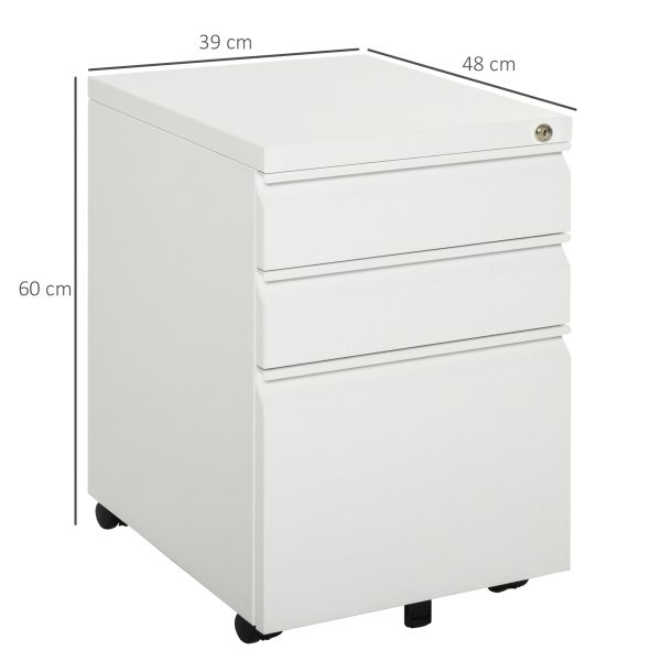 Vinsetto Rollcontainer mit 3 Schubladen Stahl Weiß, 924-024WT, 4251774985710