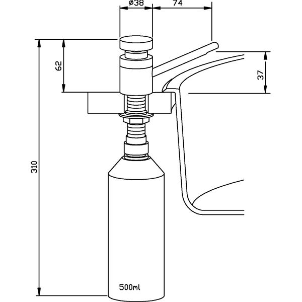 - Bauhöhe: 62 mm, Auslaufhöhe: 37 mm, Ausladung: 74 mm