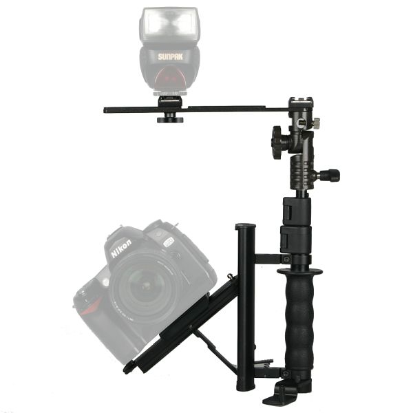 Extra-Vorteil: Durch die Teleskoptechnik kann diese Blitzschiene auch in der Höhe variabel genutzt werden. Durch die Schiene wird das Gesamtgewicht von Kamera und Blitz gut verteilt, so dass sie auch einfach aus einer Hand fotografieren können. Dies wird zum Beispiel mit einem Kabel-Fernauslöser erleichtert. Dieser Artikel wurde in der Zeitschrift „fotoMagazin“ (Ausgabe 10/10) getestet und mit 5 Sternen („Super“) ausgezeichnet.
