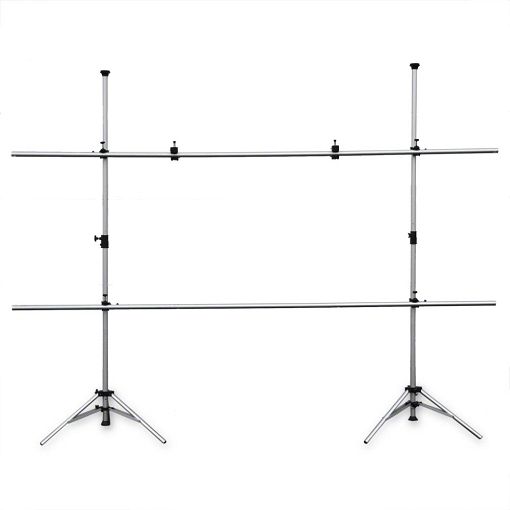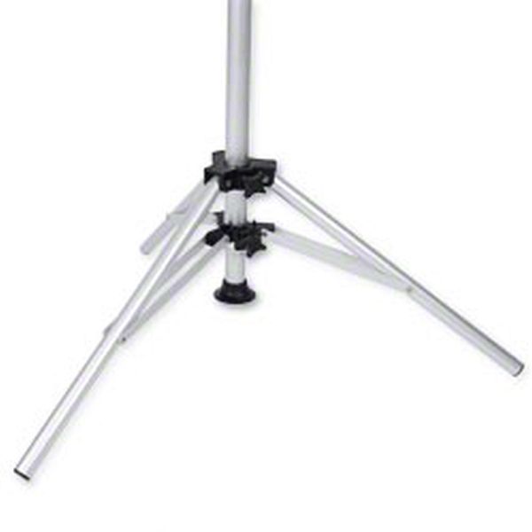 Die in der Höhe von 228cm bis 328cm ausziehbaren Autopolstangen können bei Bedarf problemlos bis unter die Decke gespannt werden oder sicher als Dreibeinstativ aufgestellt werden. Mit einem Durchmesser zwischen 3,2-3,5cm sind die beiden Autopole sehr stabil und auch die beiden Querträger haben mit 3,2cm Durchmesser überaus solide Maße. Das Gesamtgewicht des kompletten Systems beträgt ca. 9,5kg.