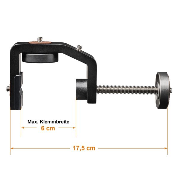 - Geräte/Produkttyp: Klemmstativ, Studiostativ Zubehör, Klemme, Stativ Klemme