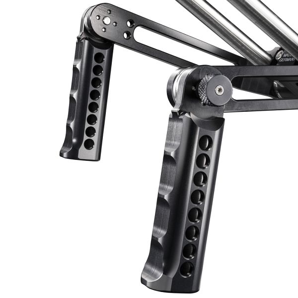Zu 100 Prozent in Deutschland entwickelt und produziert überzeugt dieses System durch höchste Präzision bei der Verarbeitung, außergewöhnliche Materialität und durchdachte Ingenieurskunst. Durch den Einsatz von besonders leichtem Luftfahrtaluminium hält das innovative Rig-System auch höchsten Belastungen stand. Größtmögliche Präzision bei der Fräsung und minimalste Toleranzen an den Schnittstellen sorgen für ein Produktdesign auf allerhöchstem Niveau.