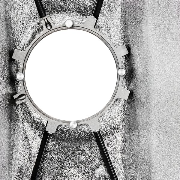 Zur genauen Lichtführung lässt sich ein Grid mit 3cm Tiefe am Klettband befestigen, das um den Rand der Softbox verläuft. Außerdem enthalten ist eine Maske, die sich hervorragend dazu eignet, einen Striplight-Effekt zu erzielen.