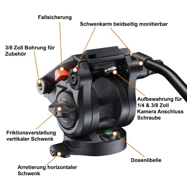 - Inkl. hochwertigem, Fluid gedämpften Video-Stativkopf